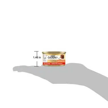 GOURMET™ Gold Savoury Cake innehåller fint skurna bitar av ox, varsamt kryddade med en gnutta sås. De förenas i en läcker måltid som din katt njuter av i varje tugga.