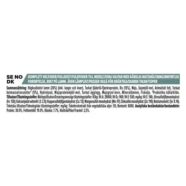 Receptet är rikt på lamm och näringsmässigt balanserat för att främja en aktiv och hälsosam livsstil när valpen växer.